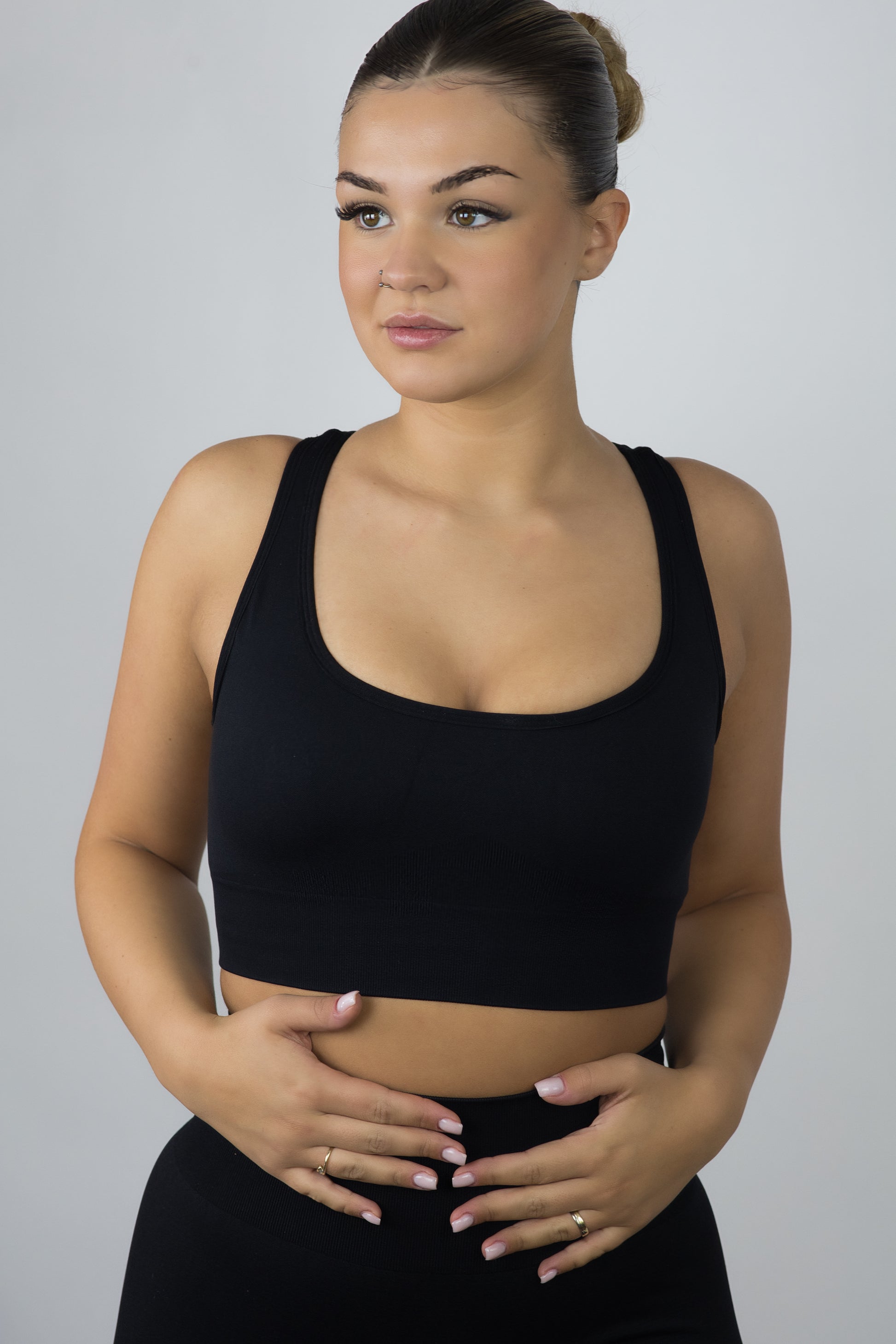 Entdecke den ultimativen Komfort mit unserem Seamless Sport-BH in Schwarz. Dieser BH wurde nahtlos verarbeitet, um Reibungen und Druckstellen zu vermeiden und dir volle Bewegungsfreiheit zu ermöglichen – egal, ob beim Yoga, im Fitnessstudio oder bei deinem Lauftraining. Dank seines atmungsaktiven Materials und der feuchtigkeitsregulierenden Eigenschaften bleibst du angenehm trocken, auch wenn es intensiver wird. Der schlichte, elegante Weißton macht ihn vielseitig kombinierbar, während das formgebende Design optimalen Halt bietet, ohne einzuengen.